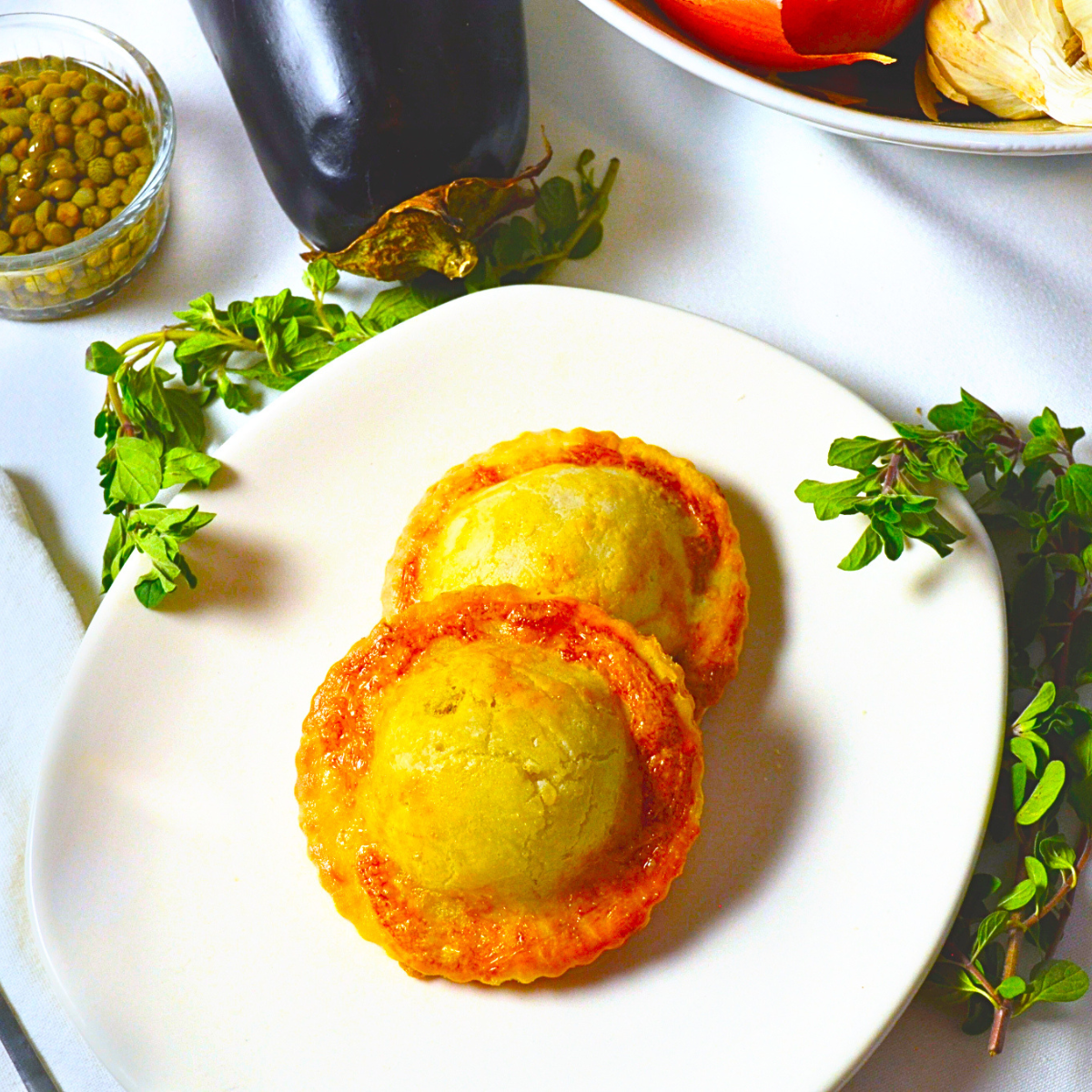 Sweet, savory, and bursting with bold Mediterranean flavor—the Eggplant Caponata Empanoli is a rich and vibrant take on a Sicilian classic. Roasted eggplant, ripe tomatoes, briny olives, capers, and a touch of balsamic come together in a perfect balance of tangy, sweet, and savory, all wrapped in our signature golden, flaky gluten-free crust.